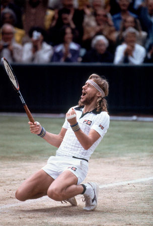 Bjorn Borg celebrating fifth Wimbledon title, 1980